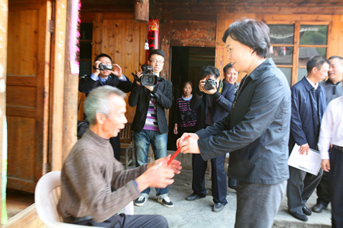 谈厅长先后考察新修的村内道路、桥梁、民族风雨廊及村容村貌等,并深入特困户进行走访、慰问。在听取厅建设扶贫工作组的情况汇报后,谈厅长首先代表厅党组向厅建设扶贫工作队致以问候,向大力支持厅建设扶贫工作的绥宁县委、县政府表示感谢。