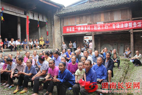 9月12日,通道县陇城镇张里侗寨数百名群众围坐在戏台下,台上杨迎波律师用侗语为父老乡亲讲解他们在上学就医、社会保障、脱贫攻坚等方面遇到的法律问题,这是通道县司法局全面铺开“律师乡村(社区)行”专项法律服务活动的一个缩影。