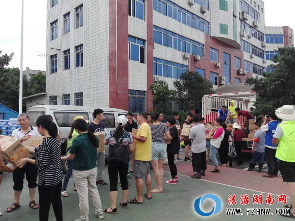 因为是前一天才得知,不少社工青年都把家里事放到了一边。现场,一名来自湖南德馨社工的青年社工,在大货车上不停从高处卸下饼干,几名身着蓝色马甲的社工在车下将货物码放整齐,浸透衣背的汗水丝毫没有影响他们的默契配合。“原本跟老婆说好了去她娘家打扫家里洪水过后的淤泥,不过她听说我要去做慰问很支持”,原来这名在车上卸货的青年社工其岳父家住浏阳柏家镇,也是受灾严重的地区之一。