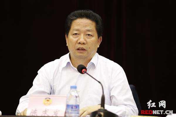 陈求发指出,中共湖南省委贯彻落实中央全面深化改革精神,态度坚决,措施得力,各项改革正在稳步推进。当前,湖南省改革已进入深水区和攻坚期,必须认真学习贯彻习近平总书记系列重要讲话精神,进一步增强工作责任感和使命感,理清改革任务,特别是用好动态管理机制,咬定改革目标,把改革事项一项一项落实,一步一步推进。政协工作要不断适应全面深化改革新形势,不断促进履职能力现代化。要深刻认识人民政协是国家治理体系的重要组成部分,自觉把人民政协工作放到党和国家事业发展中去谋划和推进,不断坚定我们的道路自信、理论自信、制度自信。要按照提高国家治理能力现代化要求履行好职能,全面提升湖南省政协工作制度化、规范化、程序化水平。