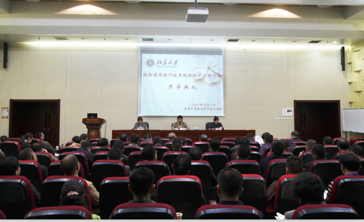 10月10日-20日,省司法厅在北京大学组织了2017年第2期处级干部研修班,全省司法行政系统近100名处级干部参加学习。厅党组成员、政治部主任张皓出席开班仪式并讲话。本次培训班是省司法厅今年党员领导干部教育培训的一项重点工作,也是加强领导干部能力建设的一项实际举措,旨在依托名校名师资源,加强教育培训工作,帮助党员领导干部拓展视野、丰富知识、更新观念,不断提升综合领导能力和法治实务水平。培训中,将邀请北京大学、中央党校、中纪委等知名教授和专家,围绕着全面深化改革、全面依法治国、全面从严治党进行深刻阐述,以专题的形式从坚定理想信念、增强党性原则、司法行政工作创新、政治体制改革与中国法治的衔接、人民司法革命传统和转型等方面进行专业讲解。