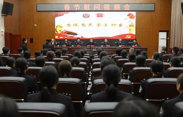 在新开铺强戒所,许显辉通过视频会议系统,向全省监狱戒毒人民警察、职工、离退休老同志,及驻狱武警官兵、驻狱检察官及其家属致以新春祝福。