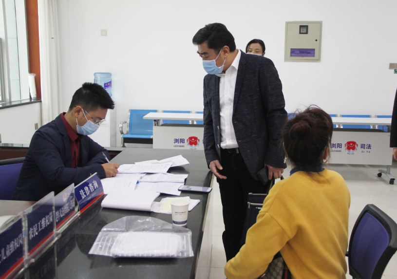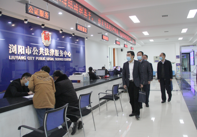 方华堂一行实地查看了浏阳市、长沙县公共法律服务中心,长沙市浏阳河司法鉴定所、湖南豪嘉司法鉴定所,浏阳市公证处和长沙县公证处,与窗口工作人员和来访群众进行交谈,详细询问疫情防控、律师调解和公证、司法鉴定业务办理等工作情况,并召开座谈会,就有关问题与市县分管领导、司法局工作人员交流。
