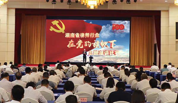 “在党的旗帜下”主题演讲比赛自3月份启动以来,广大律师积极参与,通过律所报名推荐、各市州(省直)律师行业初赛选拔、专家评审指导等,最后确定19名选手参加此次决赛。在比赛现场,选手们紧扣中国共产党百年历史,联系身边优秀党员律师,结合自身执业经历与感受,用演讲展示了湖南律师信仰坚定、胸怀大局、敢于担当的精神风貌。