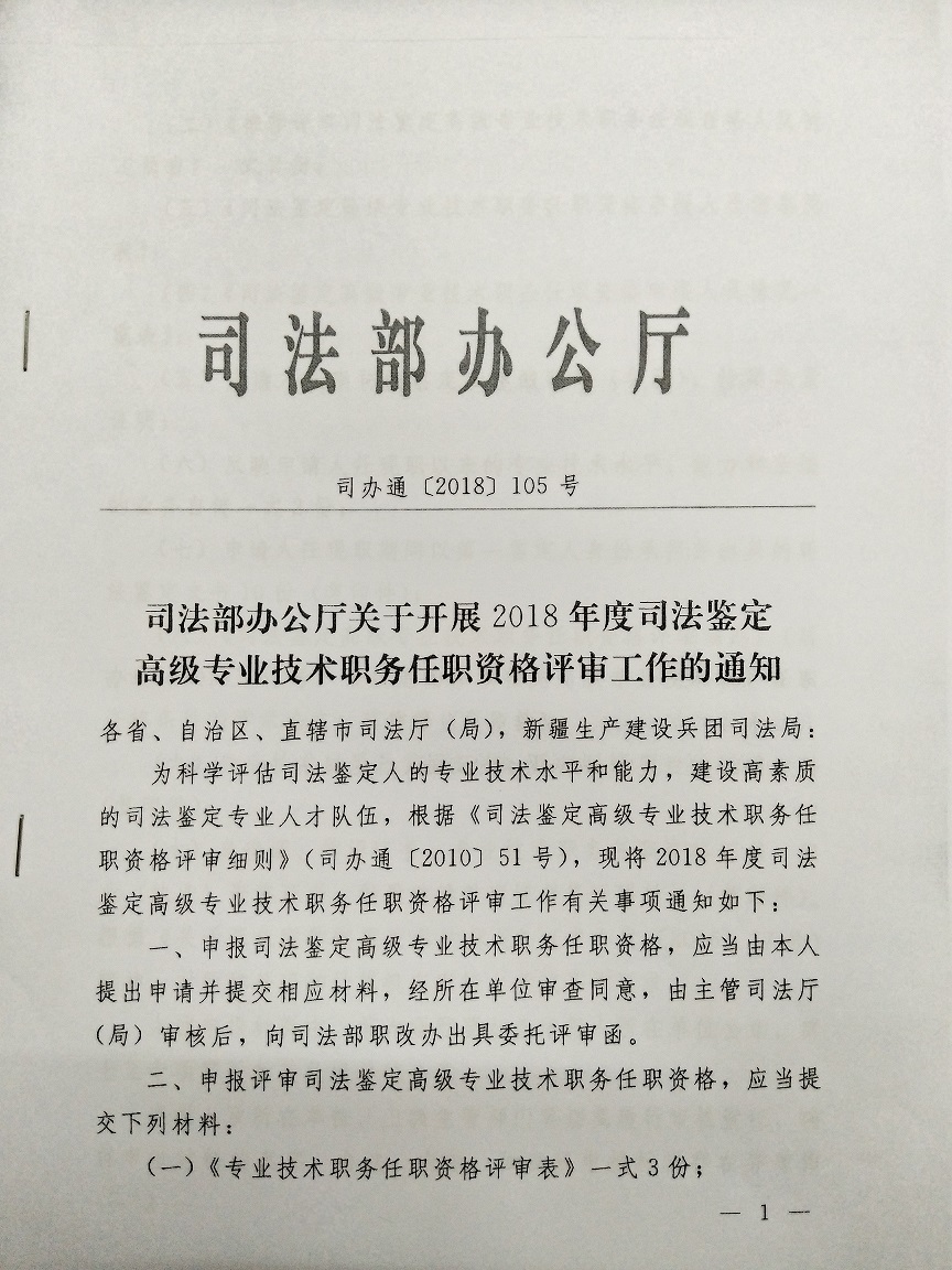 司法部办公厅关于开展2018年度司法鉴定高级专业技术职务任职资格评审工作的通知