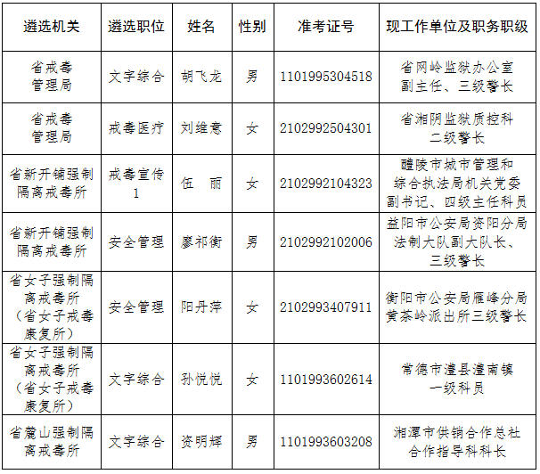 湖南省戒毒管理局2025年度公开遴选公务员拟遴选人员公示