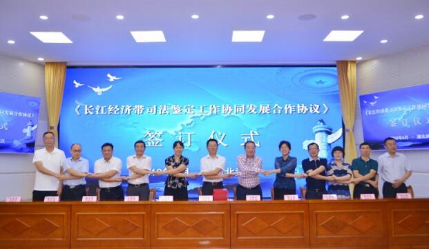 会上,长江经济带11省(市)司法厅(局)共同签订了《推动长江经济带司法鉴定协同发展协议》。