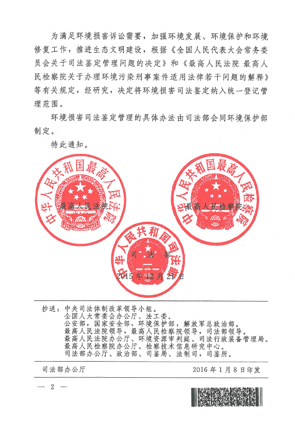 经最高人民法院、最高人民检察院、司法部协商,已将环境损害纳入统一登记管理范围。现将《最高人民法院 最高人民检察院 司法部关于将环境损害司法鉴定纳入统一登记管理范围的通知》、《司法部 环境保护部关于规范环境损害司法鉴定管理工作的通知》予以转发,请各市州司法局认真做好宣传贯彻,抓好落实!