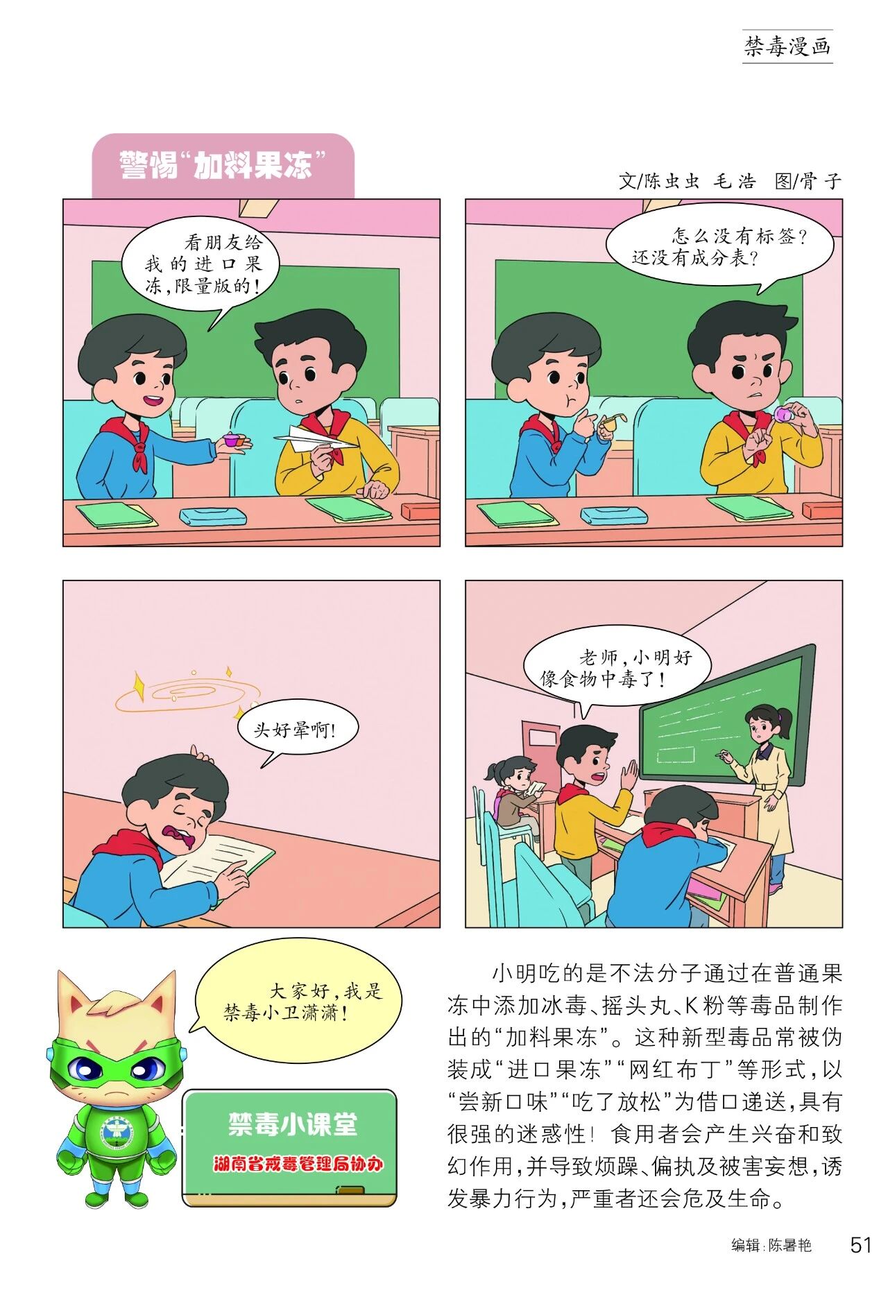 为全面贯彻落实中宣部、国家禁毒办等17部委关于防范青少年滥用麻精药品等成瘾性物质宣传教育活动的部署,湖南省戒毒管理局联合《放学后》杂志,打造了禁吸戒毒宣传漫画专栏。